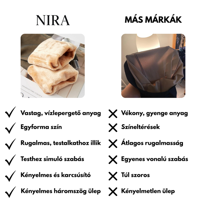 Az S/M és L/XL méretű bélelt harisnyanadrágok elöl 1, hátul 2 varrással rendelkeznek.